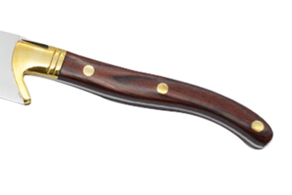 Polished multi-layer redwood handle with ergonomic curvature for a secure grip. Customizable in black wood, rosewood, olive wood, Buffalo Horn, or high-gloss color handle.